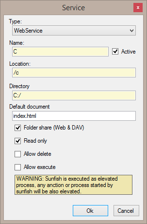 | Sunfish uses the C# web server implementation, and this implementation requires elevated user to allow remote computers connections, will be dropped on next versions |